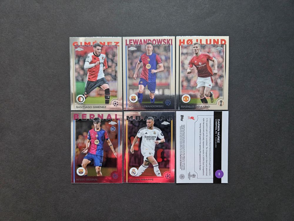 You can find cards of world class players and many rookies like: Messi, Ronaldo, Haaland, Mbappé, Van Dijk, Lewandowski, Bellingham, Neymar Jr. and many others….