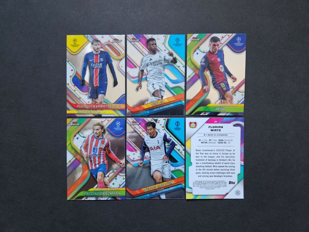You can find cards of world class players and many rookies like: Bellingham, Vinicius Jr., De Bruyne, Wirtz, Bastoni, Heung-Min, Pedri, Yamal, Leão and many others….